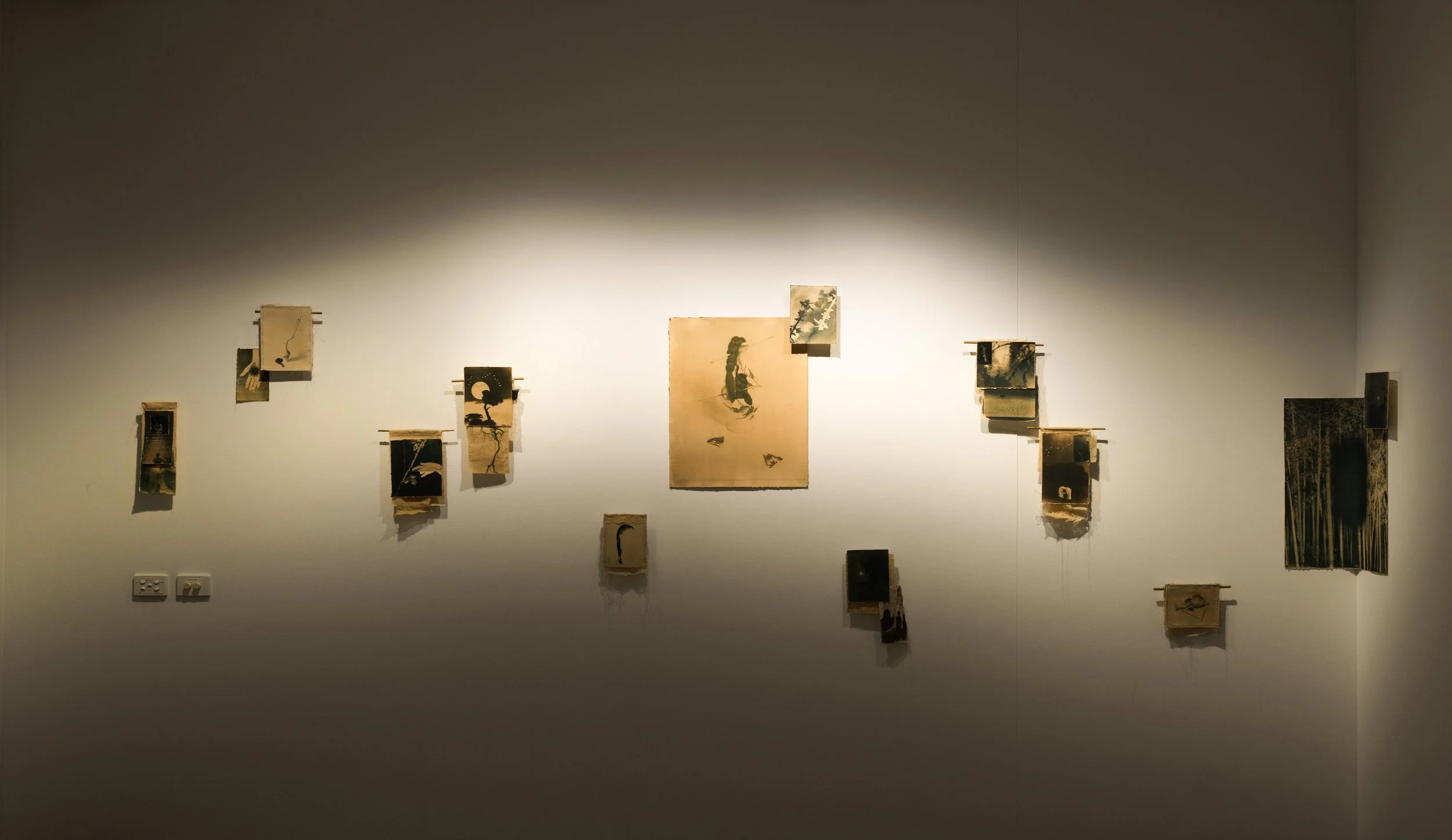 Among the Interstices is an analogue photography installation that employs alternative photographic practices. In this work, I aim to investigate why traumatic and alienating memories from the past can form connections with objects and scenes in nature, and how encountering these connected objects in life can trigger persistent memories and flashbacks of past emotional states. The project explores how to visualise this phenomenon through photography, metaphor, and materials. And the self-reflection to find the answer. In this research project, I will revisit my own memories, traumas, and experiences to conduct further exploration.